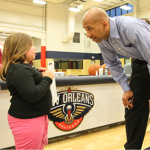 New Orleans Pelicans Head Coach Monty Williams showed St. Jude Children's Research Hospital patients and their families the new Pelicans